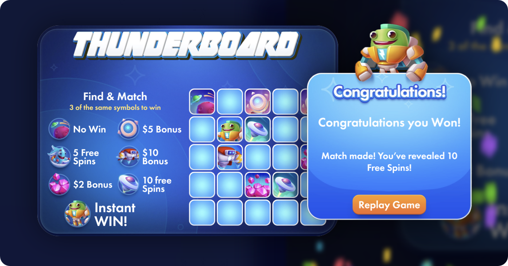 Lightning-fast taps. Thunderboard lets players dive in quickly, make choices, compete with themselves or finish a quick game during a pause in action. It’s high-engagement, low-friction.